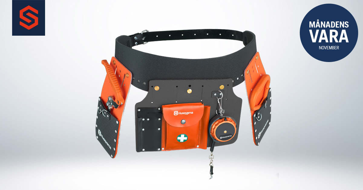 Husqvarna verktygsbälte Komplett: Under november månad presenterar vi på Söderströms ett mycket användningsbart tillbehör för dig som spenderar mycket tid åt arbete i skog och mark. Husqvarnas verktygsbälte komplett håller din utrustning på rätt plats i skogen så att du alltid har dem till hands när de väl behövs. Verktygsbältet gör arbetet både enklare, säkrare och roligare!