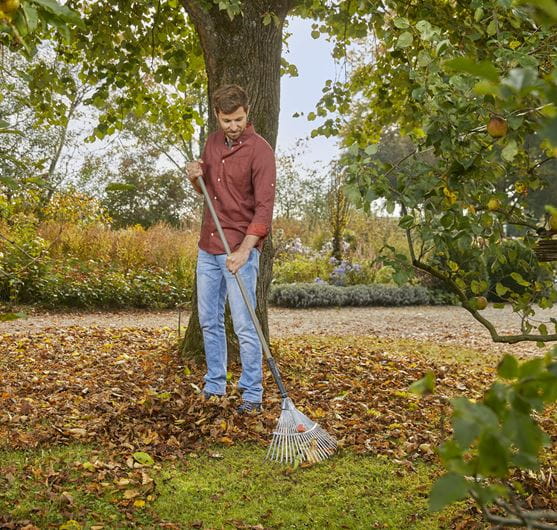 NatureLine Ställbar bladfjäderräfsa i metall från GARDENA erbjuder ultimat flexibilitet och effektivitet för dina trädgårdsbehov. Den här räfsan är idealisk för att samla löv, gräsklipp, och annat trädgårdsavfall med sin justerbara arbetsbredd från 30 till 50 cm. De galvaniserade stålspetsarna säkerställer hållbarhet och effektivitet, medan det FSC®-certifierade bokträhandtaget erbjuder en stabil och bekväm användning. Med en 10-års garanti är denna räfsa en pålitlig och långsiktig investering för varje trädgårdsmästare.